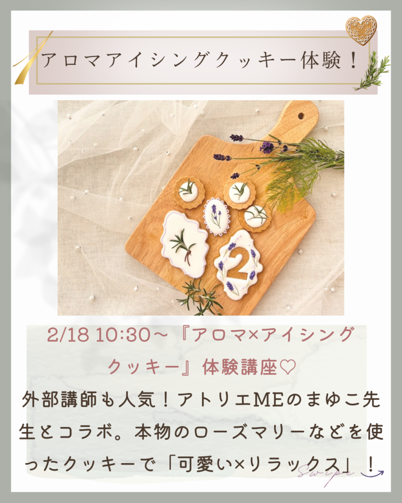 岩国市で活動中のまゆこ先生と「アロマ×アイシングクッキー」の企画。