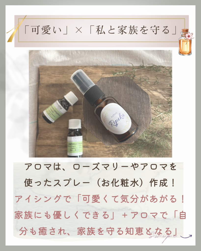 「アロマでママが癒されて、家族も自分も守る知恵がつく」アロマテラピーの私。